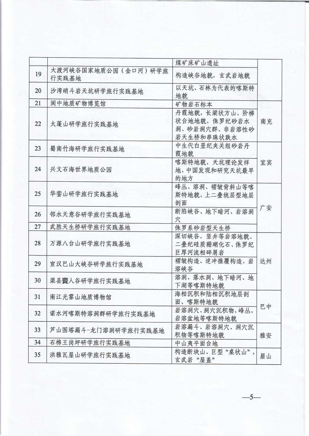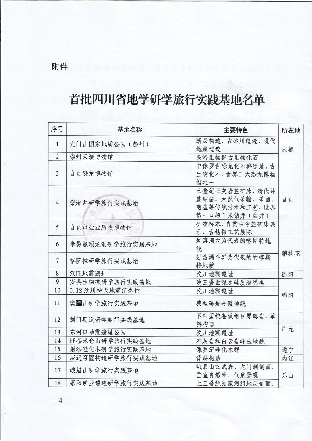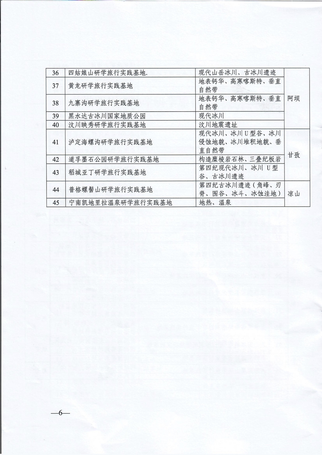 附:首批四川省地学研学旅行实践基地名单(45家)