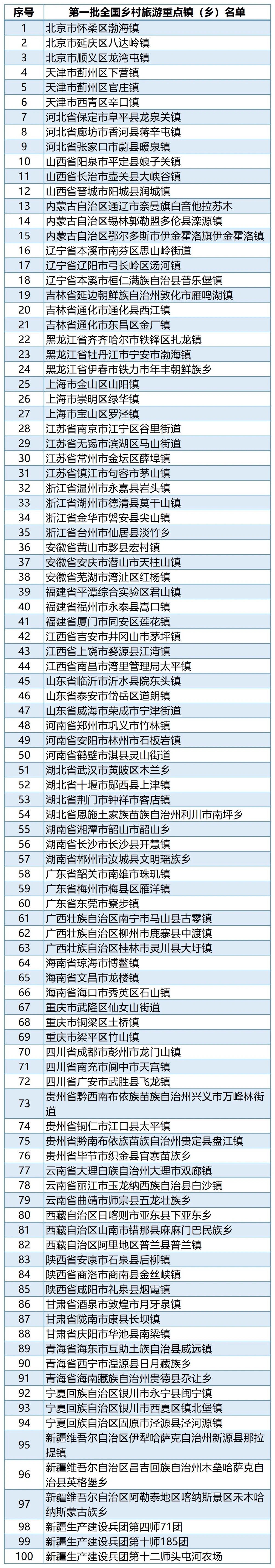 第一批全国乡村旅游重点镇(乡)名单