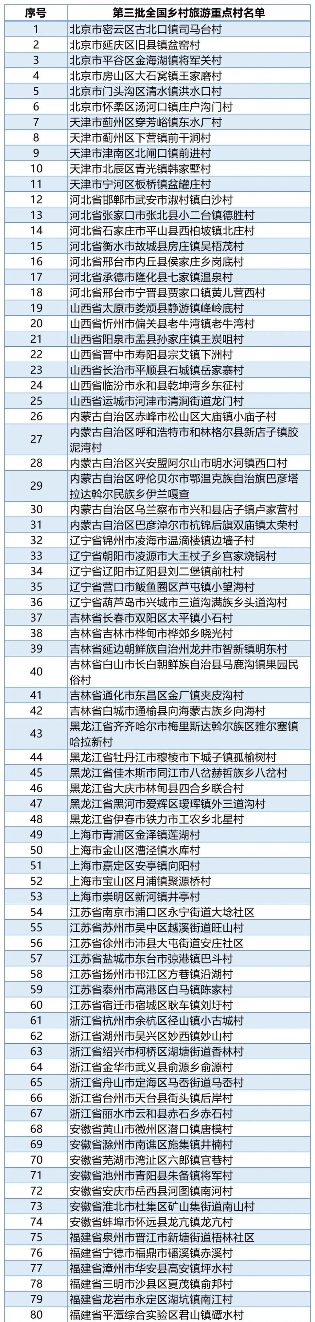 第三批全国乡村旅游重点村名单