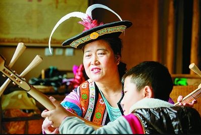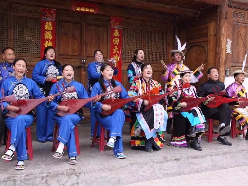 琴音调悦,歌声缭绕,舒缓疲惫的身心,沉浸于自己营造的情感的美好氛围。尤其是在婚嫁节庆之日,远近亲朋欢聚一堂,天施地化,和合纤歌,欢欣弥散,乳莺春晓,从而福由心生。清新的南坪曲子,就仿佛九寨沟的风景。这是一种至柔,更是一种至美。