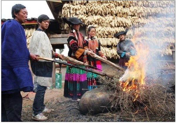 这时,往火塘里添完柴的阿牛嫂走过来,喜上眉梢地说:“我也敬大家一碗酒。”我快嘴接过话茬:“要敬酒必先唱歌,怎么样?”大家齐声说:“要得,要得。”