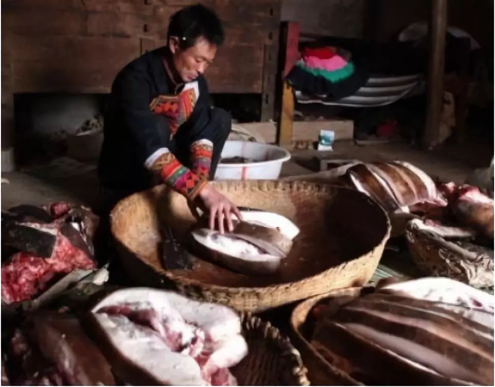 “来,大家吃点肉。”阿牛边说边蹲下身子,挑拣了一块带骨的坨坨肉,放在我手里,说:“这坨瘦肉多点,好吃些,快吃。”我拿着肉,便大口大口地吃起来。