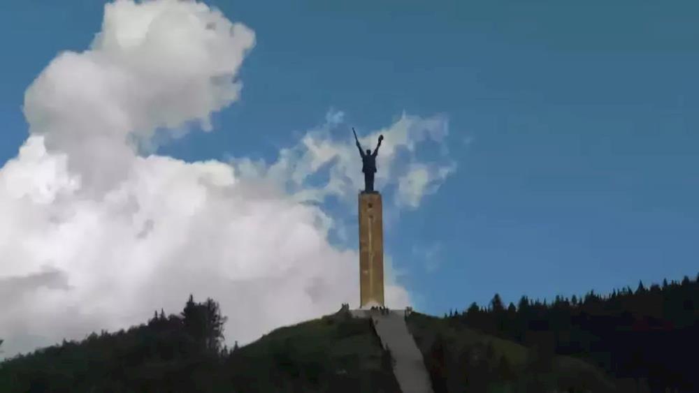 这座高耸入云的三角立柱体纪念碑,纪念的是80多年前的悲壮往事。