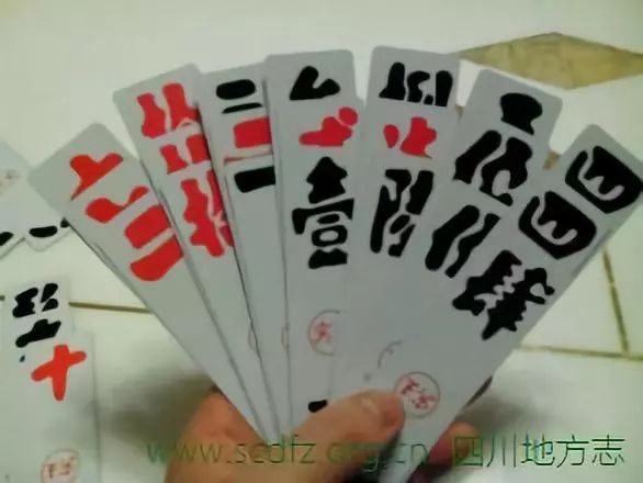 十八大或十八小(16开)。三龙(招)、五坎;全大、全小;全红、全黑;老王登殿(只有一个小的)、带子上朝(只一个大的);姊妹龙(相同大小数字均为龙)、姊妹招(相同数字大小两招)、夫妻会(相同大小数字一龙一招);双飘带(“一二三”、“壹贰叁”各两套);盐黄豆(“一二三”、“壹贰叁”、“二七十”、“贰柒拾”各一套);富贵图(“二七十”、“贰柒拾”各两套)等,均为32开,又称冠子。