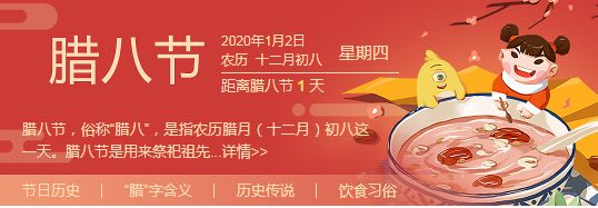 在我国民间,人们习惯上把农历的十二月称为腊月,把腊月初八称为“腊日”或“腊八”,并将其当作一个传统节日,即“腊八节”。