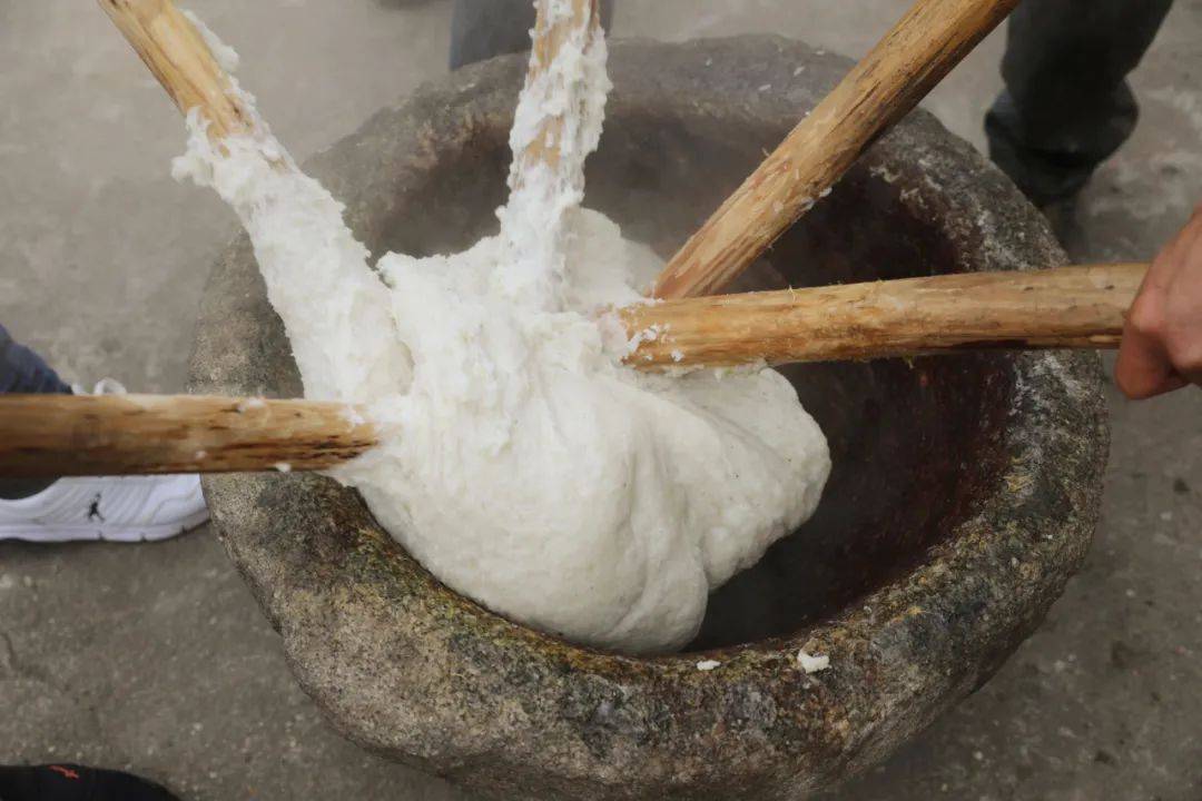 待父亲把石臼和芦毛杆清洗干净,母亲把糯米也蒸熟了。蒸盖一打开,浓浓的饭香扑鼻而来,我忍不住咽了几口口水。母亲把蒸好的米饭倒入石臼中,父亲开始了臼打。
