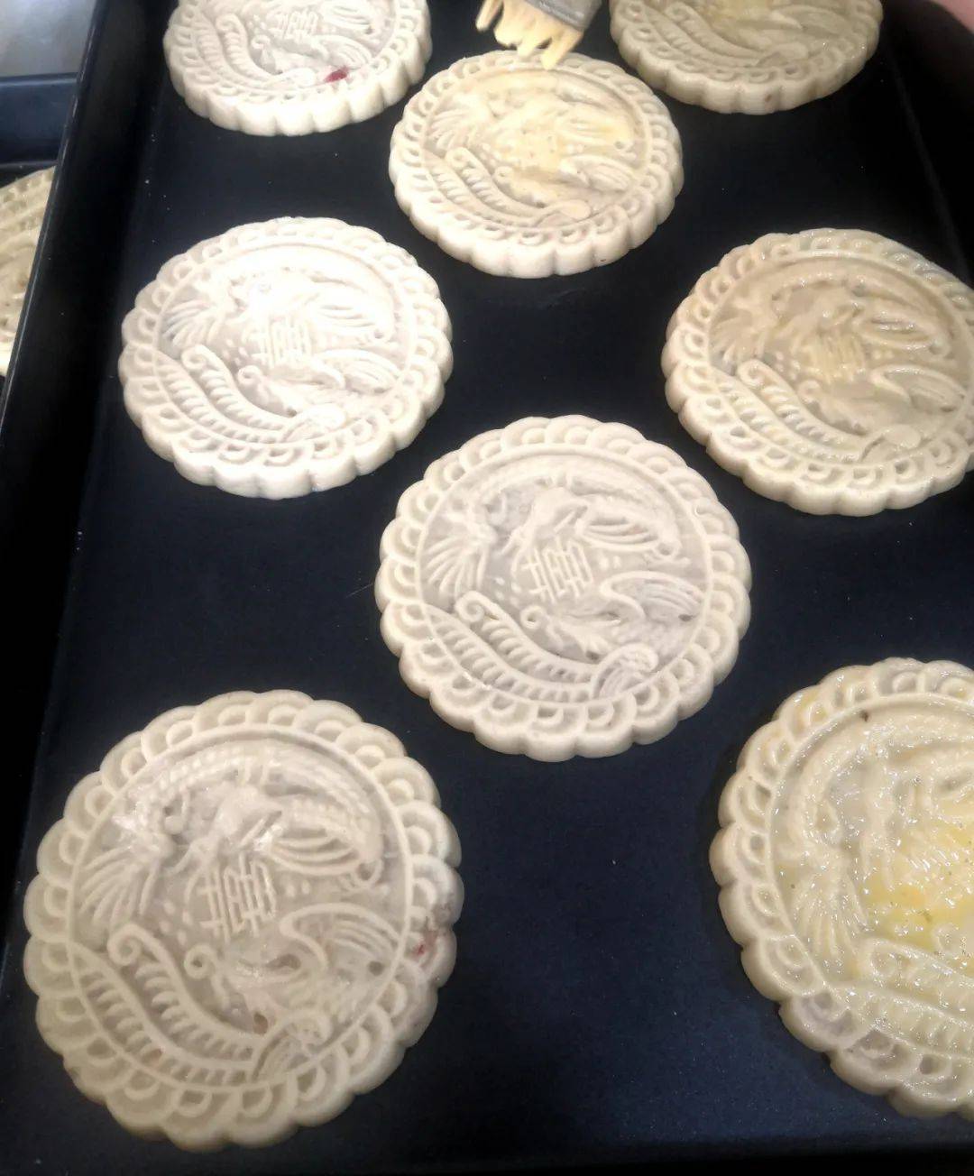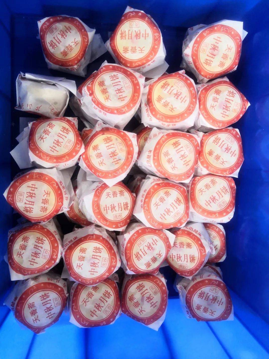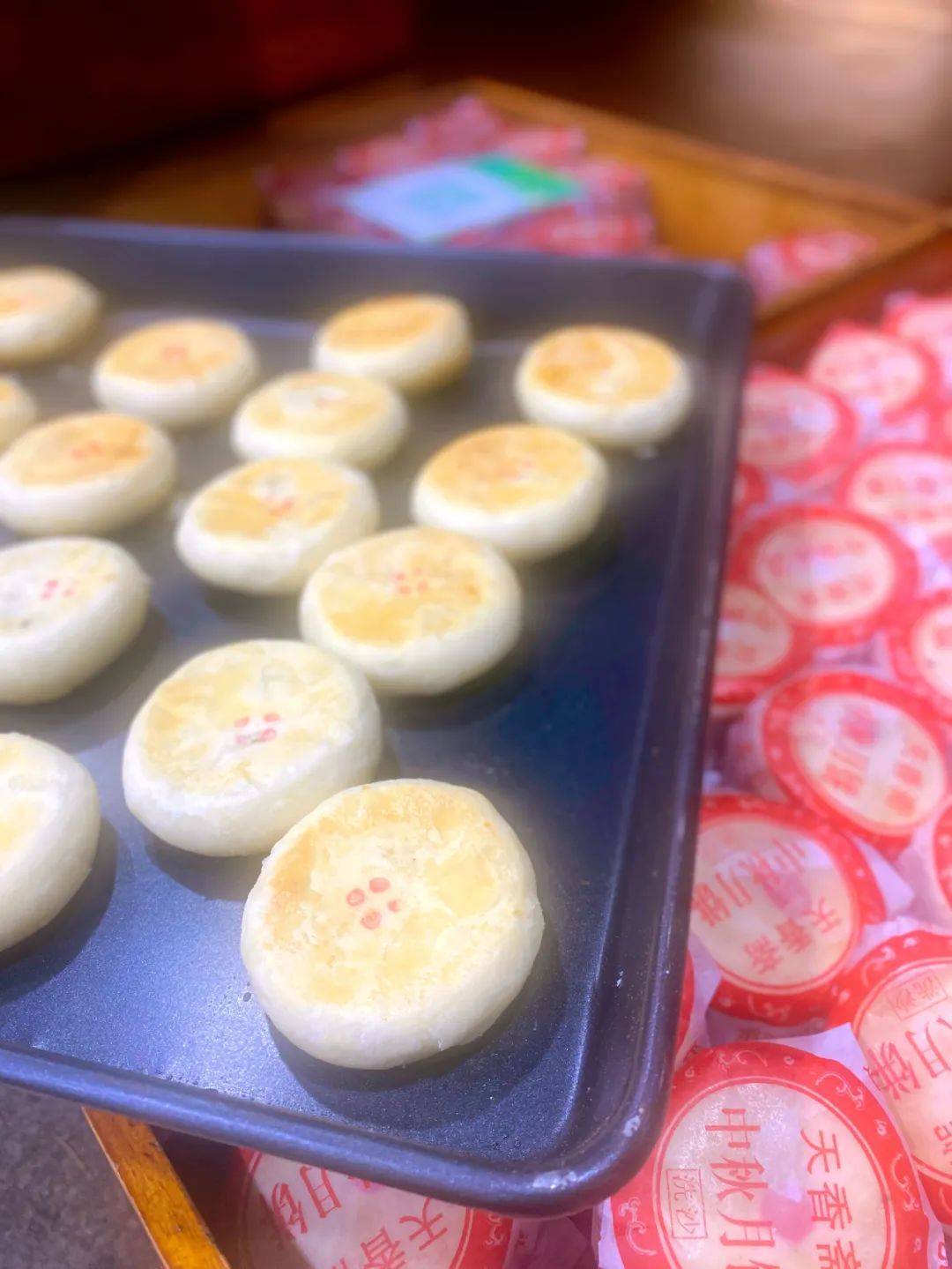 百年老店天香斋刚出炉的洗沙月饼(有四个红点)