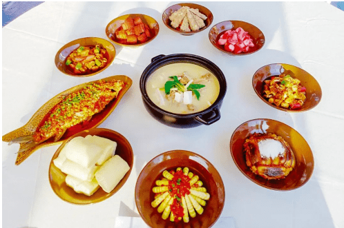 唐广明元年,黄巢起义军攻入长安,唐皇帝逃到成都,杨端、高卜锡二人护卫有功,被封天全县当了土官,从此开启了当地800多年的汉族土司统治历史。土司宴这道美食大餐也流传了下来。