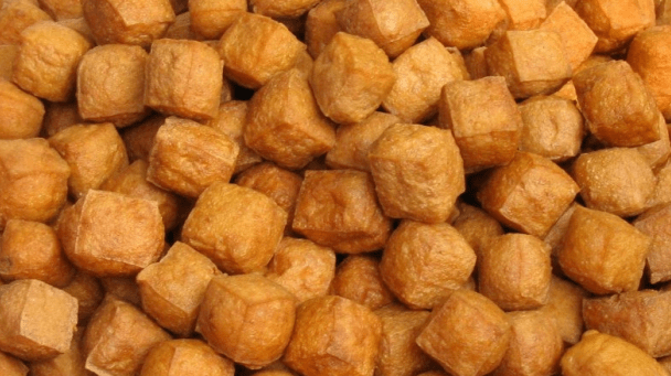 炸油豆腐,必须用上等清亮的菜籽油,如果油的质量不好,用它炸出来的油豆腐便成绛色(即大红色、正红色),没有卖相。油炸豆腐时,不仅要看坯子的老嫩程度决定油温的高低,同时还得考虑一年四季的气温,一般情况油温要在200℃度左右。