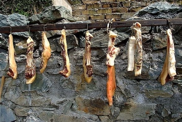 那年初春,诗人吉木狼格从大凉山甘洛,带回几大块凉山彝族特有的腌肉,就是用山上敞放的草猪,在火塘上熏腌的。他送给我一大块。可以说很多年,我都没有吃到过这么激动口舌的猪肉了。一大块肉,竟然是吃着玩吃完的。这样的美食极品,就是山野中那些普普通通的农家人做出来的,这真叫我们这些都市里倦怠的肠胃,遗憾得很。