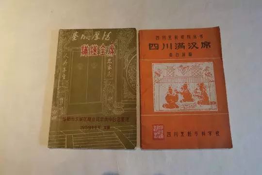《成都满汉全席》,1959年4月成都东城区饮食服务公司出品(左)。《四川满汉全席》,1986年5月四川烹饪专科学出品(右)