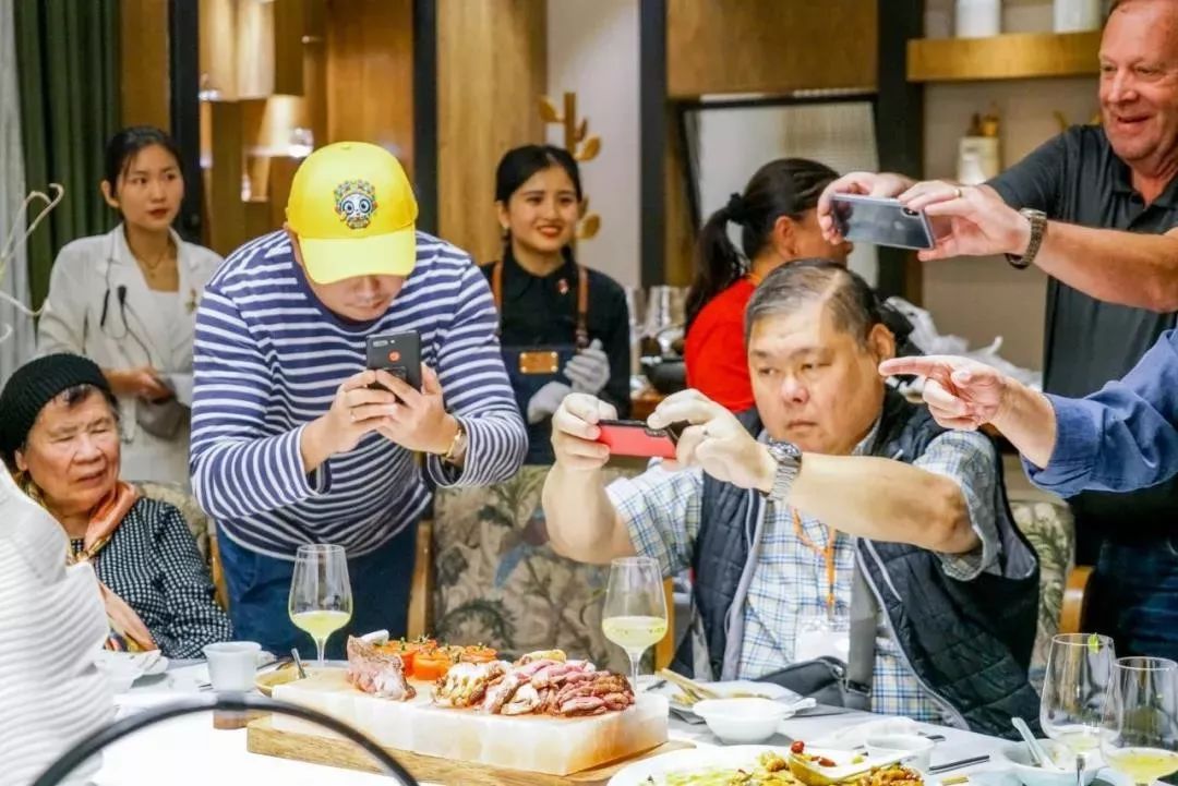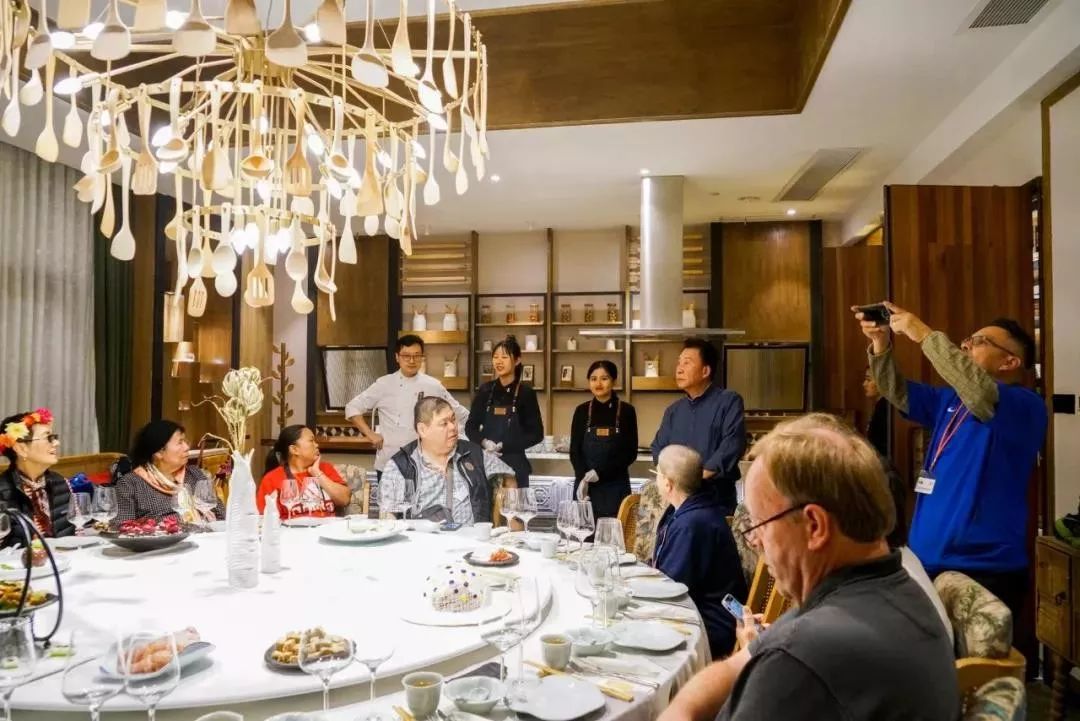 甄文达带领由美国厨师、美国厨师工会主席、旧金山公共电视台经理等一行15人组成的美食团,在银芭品鉴交流。美食家们像发现了新大陆一样兴奋,与大厨不断探讨美食文化。