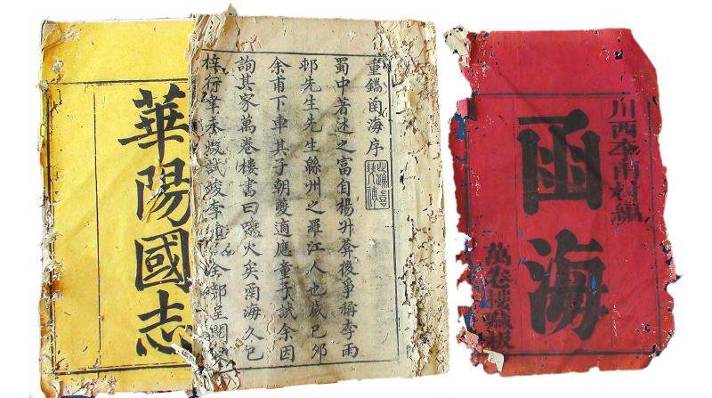 古籍《函海》(修复前)。