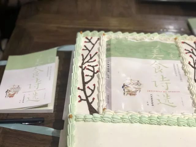 发布会当天,有粉丝为二毛新诗集的出版定制了蛋糕,上面覆盖了《二毛美食诗选》的封面,吉狄马加用奶油筒亲手在蛋糕上写下了一个繁体的“爱”字。“二毛的诗给心灵带来温暖和慰藉。”他说。
