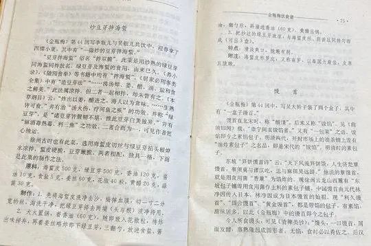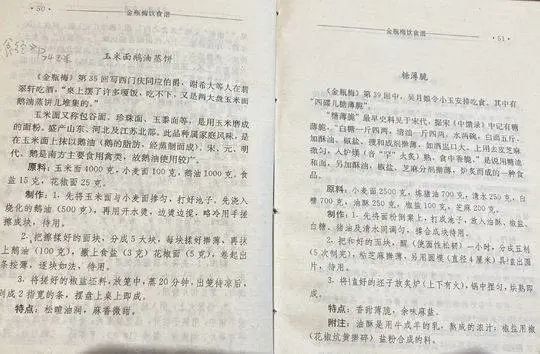 胡德荣曾创建过一家“金瓶梅”酒店,《金瓶梅饮食谱》正是在其酒店经营菜品的基础上编写,其中详尽介绍的140多种菜点,均取用小说中所罗列的品种,且都经过精心挖掘和考证,并研制供应面市。