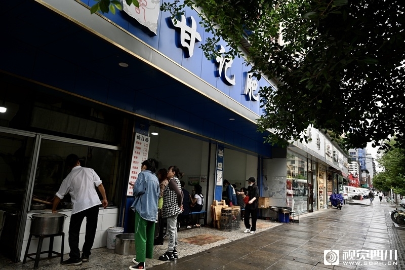 1990年就开始营业的甘记是成都典型的苍蝇馆子,老食堂样式的桌椅板凳,冬冷夏热。服务也必须跟不上,排队点单,给钱发筷子,然后自己去旁边的窗口一边欣赏小帅哥师傅冒粉儿,一边流着口水等待。谢霆锋来这家吃也要自己“排着队,拿着粉儿的号码牌。”。