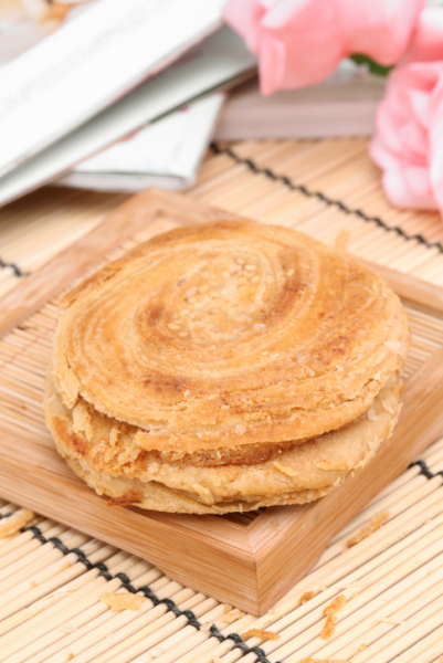 酥饼,四川梓潼“三绝之一”,因其薄、脆等质感,当地又称“薄脆子”。2011年7月,梓潼酥饼制作技艺被公布为省级非物质文化遗产保护项目。