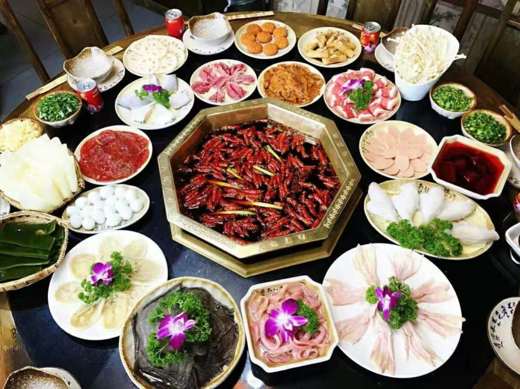 九尺赵老二鲜鹅肠火锅、黎氏藿香嫩鱼、九尺五香卤板鸭、馋嘴蛙、翡翠番茄虾仁小笼包、升庵桂花鸭、红烧鹅、熊氏九蒸、留香居黄金甲鱼火锅、冷锅串串香、田鸭肠、怪味鱼、酱焖生态甲鱼、智慧妈妈墨鱼水饺、蔬菜汁、关口许记特色卤鸡、军屯锅盔、年年有鱼、溪河鲢鱼、特色双椒乌鱼