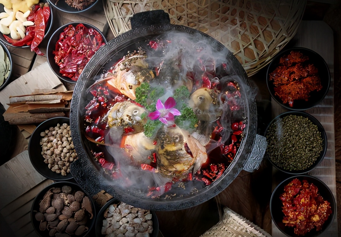 人间至味,川香天下。素有“天府之国”之称的四川,境内江河纵横,四季常青,烹饪原料多且广。山区的山珍野味,江河的鱼虾蟹鳖,肥嫩味美的各类禽畜,四季不断的新鲜蔬菜和笋菌,再配上品种繁多的酿造调味品和种植调味品,碰撞出奇妙般的味道。从麻辣、酸辣、蒜泥、红油,到糖醋、鱼香、怪味,不同的配比,配出了24种不同味型,无不厚实醇浓。所谓“一菜一格”“百菜百味”,是之也。