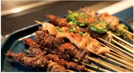 串串烧烤,大到餐馆,小到路边摊,皆可买到。夜幕降临,不管男女老少,都会上街撸两把,尝尝石棉烧烤的味道。