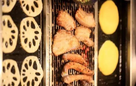 新式烧烤网烧在烤的时候油烟味儿被大大地降低,并且一个烤架上融合了多种烤法,坐在旁边观看,就是一次表演。