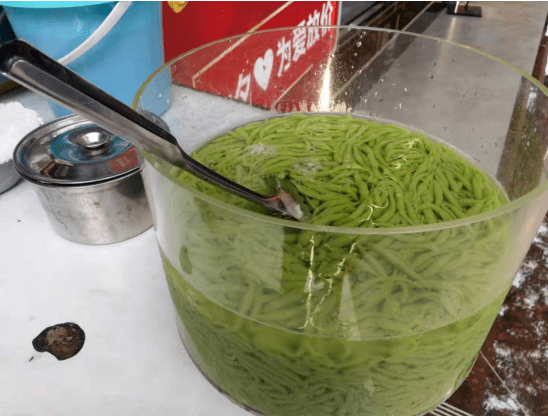在岁月的流传中,大竹凉虾也逐渐推陈出新,由最初单一的米白色演变为米白色、绿色两种供食客自己挑选。绿油油的颜色看着惹人喜爱,不少食客指定选它。不要看它颜色翠绿担心添加了色素,这种颜色其实是用蔬菜汁调制的,完全纯天然,所以对于爱好的人们来说,吃它不会有丝毫的心理负担。