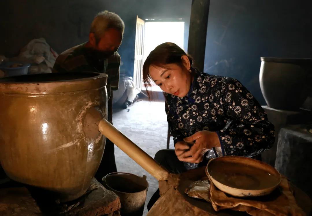 被酒姑端上土灶铁锅
