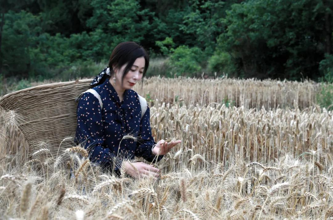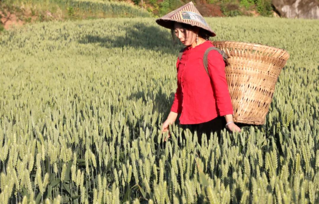 酒姑行走在麦田中