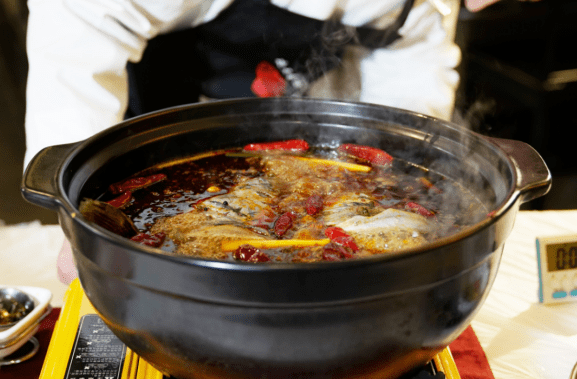 黑龙滩打码鱼头火锅,选取川西第一海——仁寿县黑龙滩优质水源生态花鲢,鱼头肉质雪白细嫩,配以上等清油熬制的底料,麻辣鲜香,天然营养。
