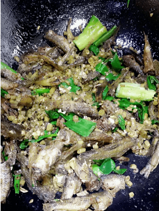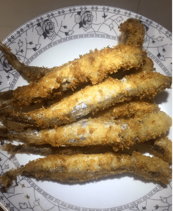 油炸麻鱼子的做法简单,大碗里的面粉加水调和成面糊后,再倒入洗剖好的麻鱼子逐条拌匀,最后放点毛毛盐,等到铁锅里的清油烧熟,就可以一条条放入油炸了。油炸好的麻鱼子颜色金黄,鱼肉外面包裹着一层酥脆的面锅巴,用手一条条拿起,牙齿轻轻一咬,包裹着的面锅巴就脱落了,里面的鱼肉和鱼骨都已炸熟透,一截一截咬来吃,满口沙沙的,特别的香,特别的脆,连掉在桌上的渣渣都是香的。吃了又拿,吃了又拿,小时候,只要家里做油炸麻鱼子,还没到吃饭,盘子里炸好的麻鱼子往往已被我们偷吃了一半。