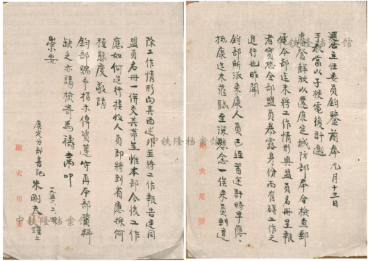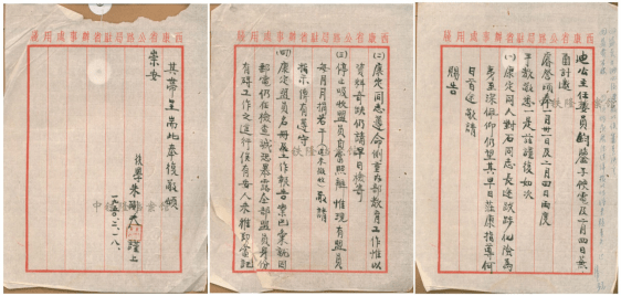 信中还关心同属西康省的甘孜地区民盟活动:“盟员范昌元,系与刚夫同时入盟,昨日来椷,嘱转向我公请示渠在甘孜有无展开工作必要。敬请指示俾资转达为祷”。范昌元,长期在西康省政界任职,曾任西康省德格县县长,甘孜专员。民国时期曾以他随身携带“范”字旗号,走访基层流动办公,现场解决问题著称。