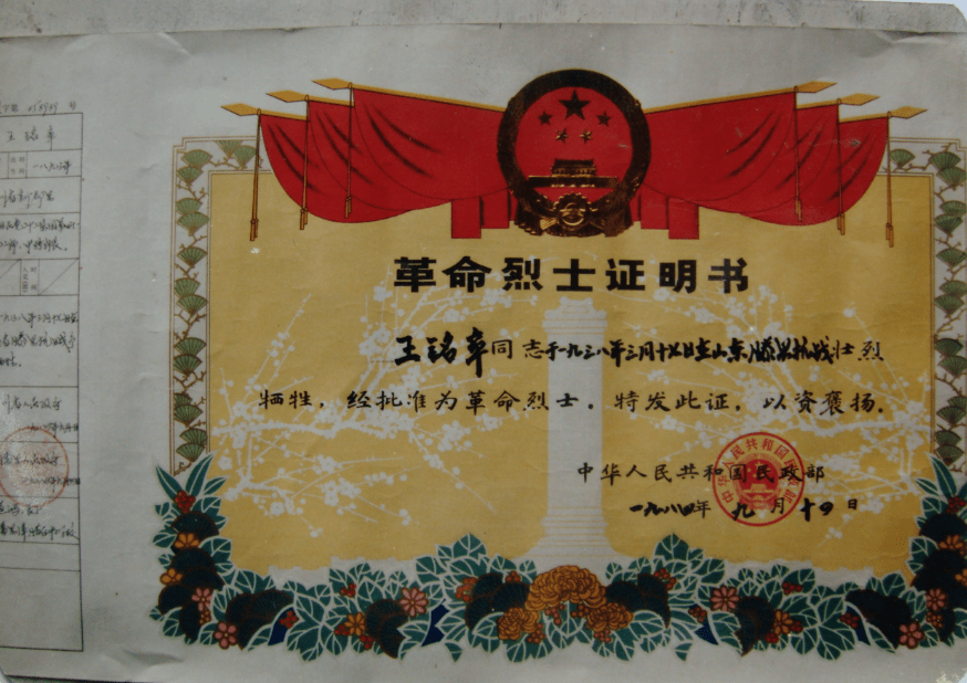 1984年9月1日,四川省人民政府追认王铭章为革命烈士,同月14日,中华人民共和国民政部颁发烈士证书。