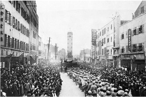 图为重庆人民夹道欢迎人民解放军(图片来源:新华社)