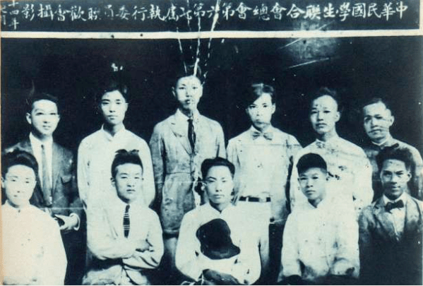 余泽鸿在上海参加中华民国学生联合会总会第六、七届执行委员会联欢会 时合影(后排右二余泽鸿、右三李硕勋、左二阳翰笙,前排左一何成湘)