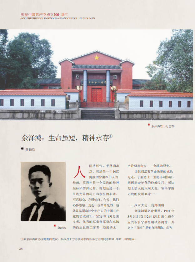【巴蜀英烈】余泽鸿:生命虽短 精神永存 ‖ 蒋德均