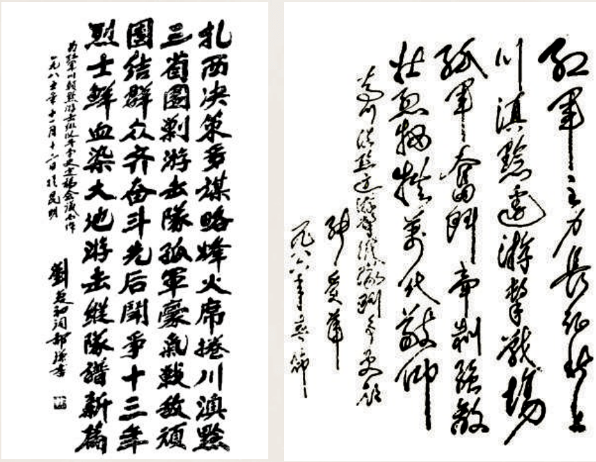左图为1985年11月,原红军川滇黔边区游击纵队政委刘复初题词;右图为1986年春,张爱萍将军为红军川滇黔边区游击纵队题词