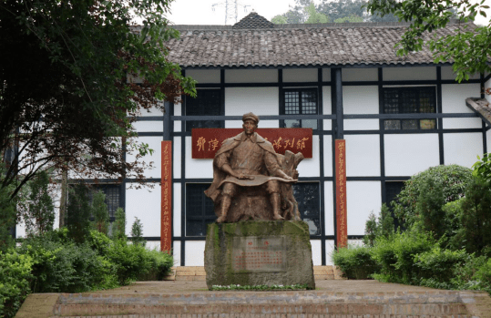 2016年8月一个晴朗的下午,作为同乡,作为邓萍牺牲32年后来到这个世界的我,怀着一种崇敬之情,驱车来到邓萍故里。车在一个宽敞平坝停了下来。在这青山绿树环绕的邓萍故里,一套川南民居式的青瓦房映入眼帘,白色的墙体,褐色梁柱。在它正前方的院坝前,一方坚硬的岩石之上,是闪耀着金属光芒正襟危坐的邓萍塑像。他坐在小小的石墩上,肩披军用呢大衣,身着军服,头戴配有五角星的八角帽,手里的地图和放大镜平放在双腿上面,他微笑着的瘦削面容透出一股军人特有的英武之气。他柔和的目光凝望着远处起伏的山峦……