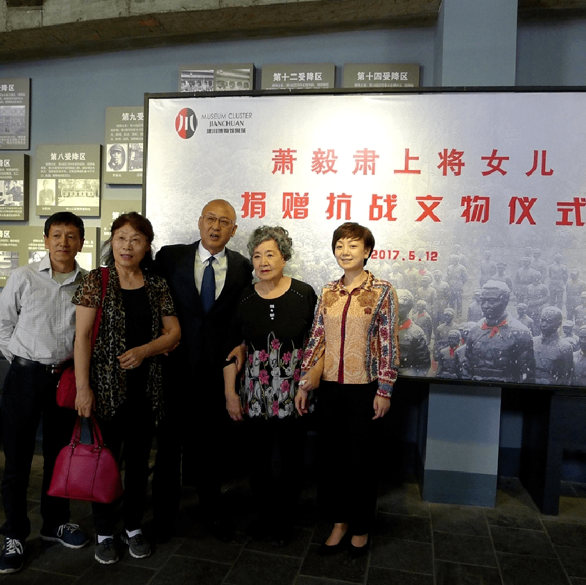 2017年5月12日,萧毅肃女儿、著名教育家顾毓琇儿媳萧良杰女士,向建川博物馆捐赠两件抗日文物,时任四川省委统战部刘坪常务副部长会见了萧良杰女士一行(图片来源:四川统一战线网)