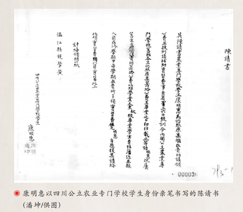 1919年,四川党团组织创始人、四川最早的马克思主义思想传播者王右木出任四川公立农业专门学校(四川农业大学前身办学机构,存续于1914—1927年)经济学教员,他在任教期间积极巧妙地宣传马克思主义理论,并在学生群体中组织创立四川首个马克思主义读书会。当时就读于四川公立农业专门学校林科的康明惠深受王右木熏陶和影响,在其引领下逐渐成长为其得力助手及马克思主义的坚定信仰者,后康明惠成为四川党团组织的骨干成员,他积极参加党领导的重大革命活动,并在家乡温江创立首个党组织。