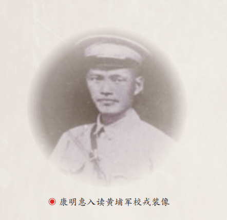1924年,康明惠服从组织安排,以个人名义加入国民党;次年初,他再次服从组织安排,离开四川公立农业专门学校南下广州,考入黄埔军校第四期工兵科。求学期间,军校内的右派分子用拉拢和打击的手段分化革命学生。康明惠始终不为所动,毅然决然地参加周恩来组织领导的“青年军人联合会”,同校内的国民党右派进行坚决斗争。黄埔军校毕业后,康明惠被任命为国民革命军第四军工兵排长。北伐战争中,康明惠身先士卒,作战英勇,很快升为工兵连连长。“宁汉合流”后,第一次国共合作失败,康明惠随部队参加南昌起义。军旅生涯中,康明惠身上再次凸显出他在身处复杂局势中坚定不移跟党走的组织原则性。