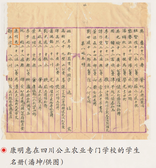 成都地方团成立后,为促进工人智识教育,提高工人阶级意识,康明惠受委任在四川公立农业专门学校开展平民教育。康明惠利用其农学专业知识易于农工接受的特点,迅速于成都东门外的农业学校办起平民教育班,并亲自担任班主任。招收的学生有生绉帮工人20人、四川公立农业专门学校校工30人、附近农民4人、兵工厂工人3人,共多达50余人。1923年,王右木在成都地方团改组后的川省团的工作向中央作报告中就提到:“工人教育系由谢国儒君于高师校主任设讲,王右木任教育,请团外张良卿教注音字母。为暑假中留地步计,拟推钟君于监狱校设平民教育,拟请康君于外东农校设平民教育,实则促进工人教育也。”①