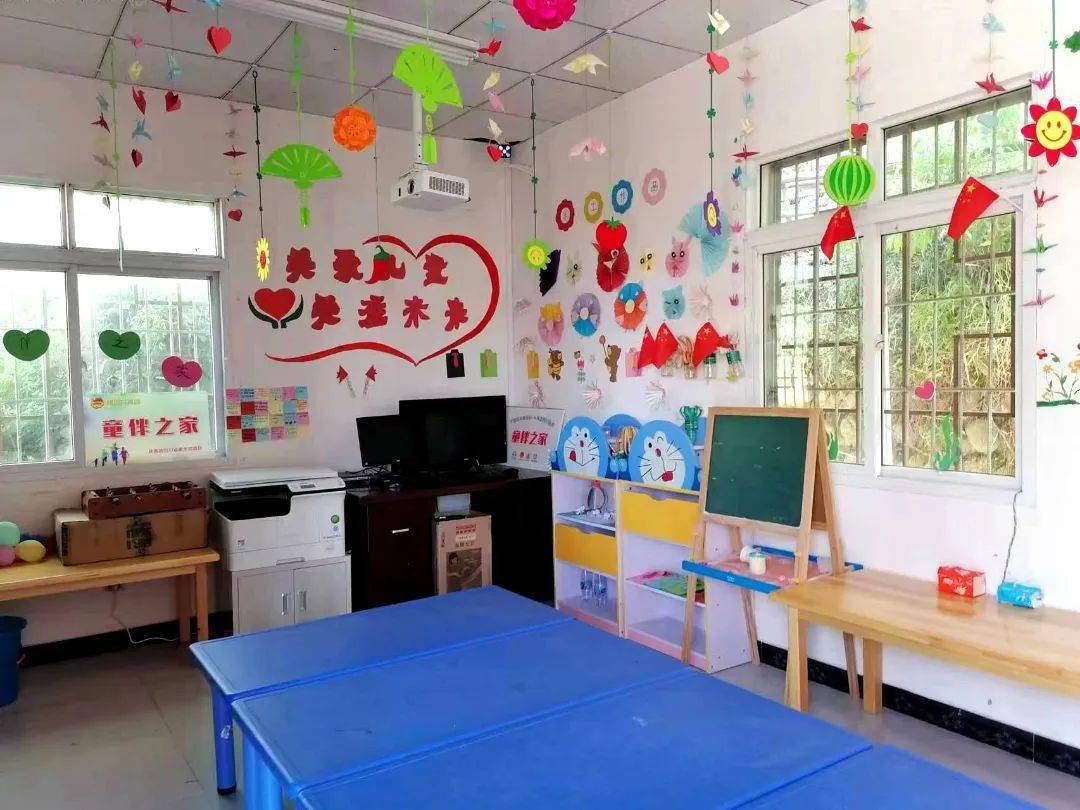 张蓉把童伴之家建得温馨。屋子的墙上“童伴之家欢迎你”等话语迎接你的到来;专栏内各种活动照片整齐排列,还有每个孩子的特色纸名片;横着竖着系的绳子上,吊挂着各种颜色的彩纸带,以及季节性树枝花草;书架上放满了各种儿童读物,以及孩子们的手工作品。这样舒适的环境,加上丰富多彩的活动,哪个留守儿童不留恋,哪个不愿意来童伴之家呢!