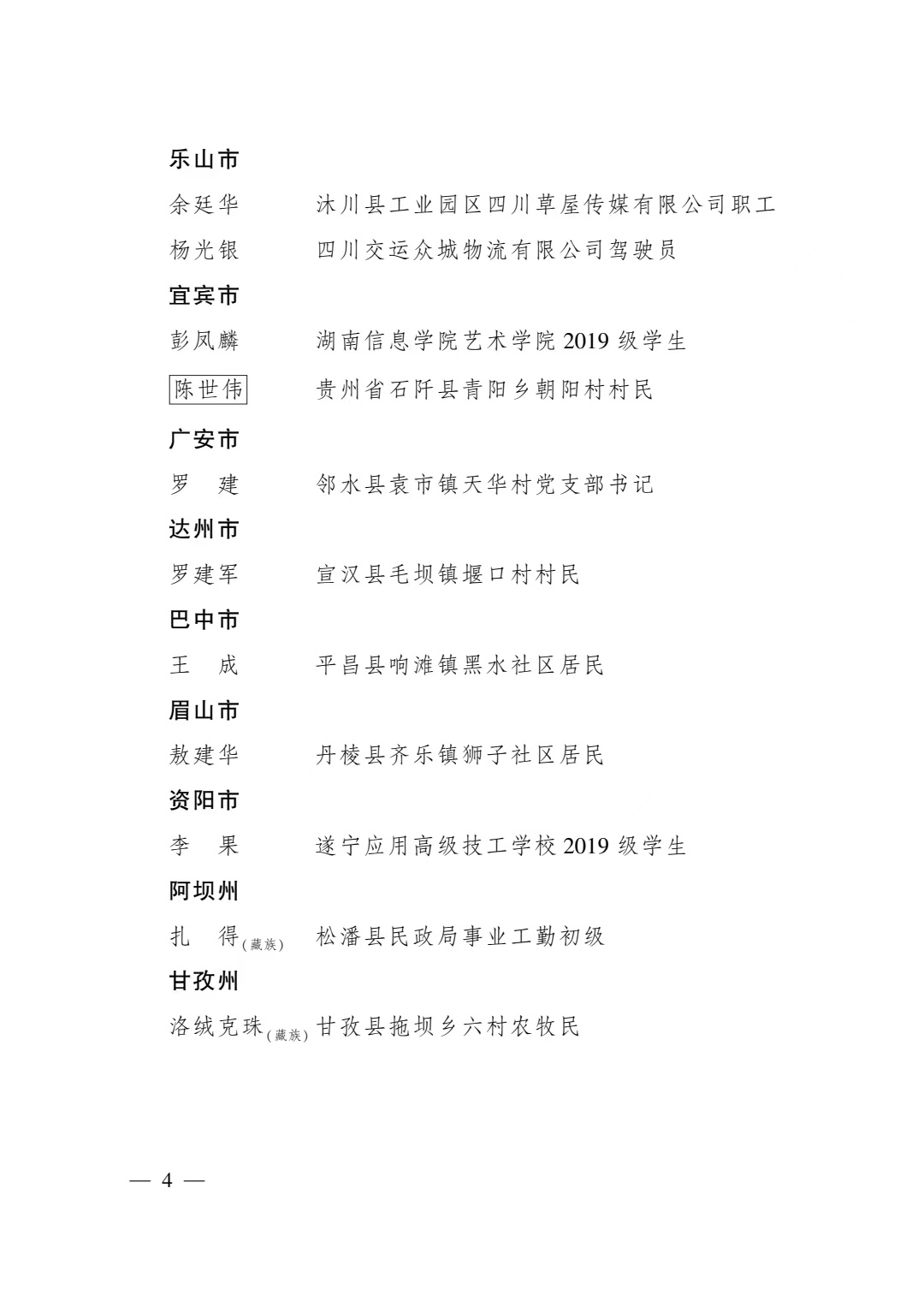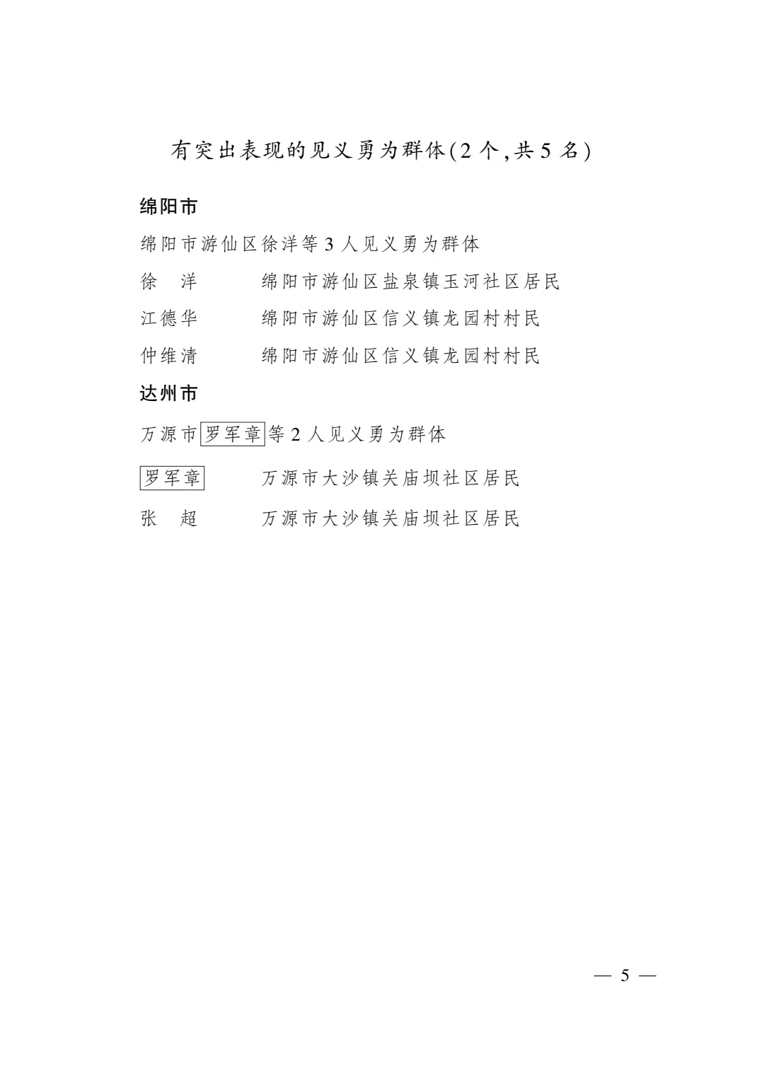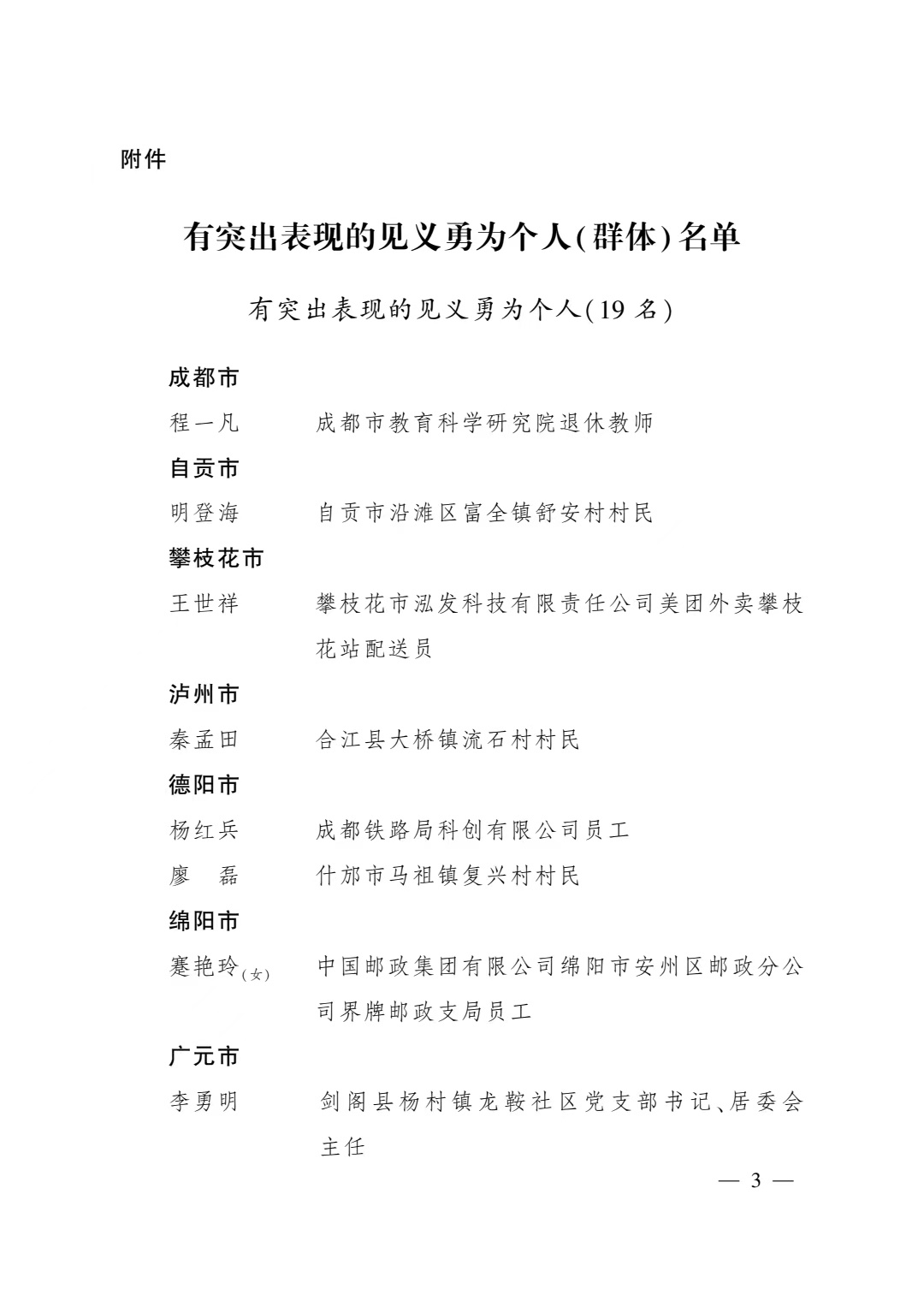 四川:对程一凡等有突出表现的见义勇为个人(群体)进行奖励