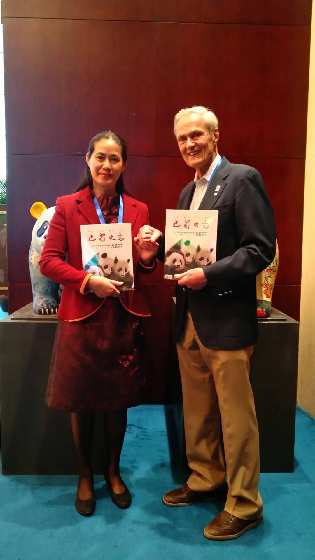 2019年9月29日,2019中国(四川)大熊猫国际生态旅游节在成都开幕,四川省地方志工作办公室党组成员、副主任赵行向乔治·夏勒赠送《巴蜀史志》“纪念大熊猫科学发现150周年”专刊(蒲建宇 摄,图片来源: 四川省地方志工作办公室 )