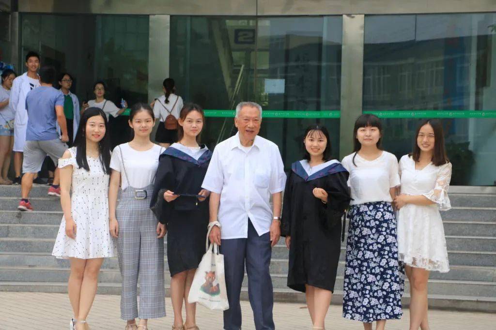 西华师范大学2014级毕业生与上班途中的胡锦矗教授合影(图片来源:西华师范大学网)