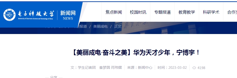 据电子科技大学介绍,在2022年的秋季校招中,宁博宇收到了华为两个产品线的邀请,成功地通过了普通博士面试并进入了加试环节。在经过了十几轮的面试后,宁博宇在求职竞争中脱颖而出,拿到了华为“天才少年”计划百万年薪offer(录用通知)。