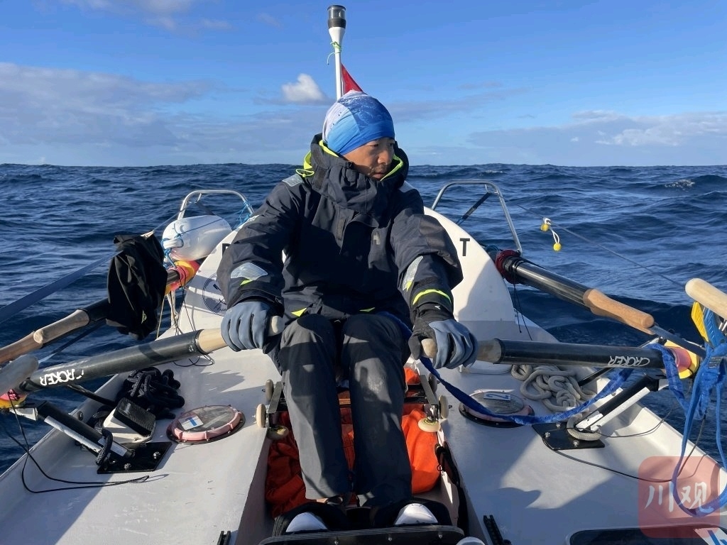 刘勇和团队划桨航行中