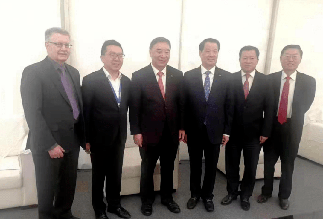 前左1:阿波罗投资人王晓津,左2:研究中心主任秦关根教授,左3:中国工程院院士、中建材集团总工程师彭寿,右二:周华康博士,右一:潘锦功博士