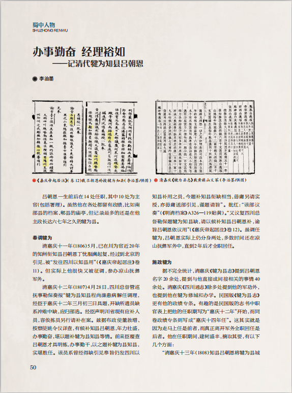 【人物】办事勤奋 经理裕如——记清代犍为知县吕朝恩‖李治墨