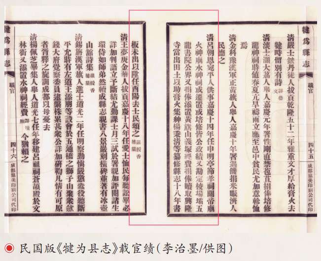 吕朝恩一生前后在14处任职,其中10处为主官(包括署理)。虽然他在各处都留有政绩,比如南部县的档案、郫县的庙亭,但记录最多的还是在他主政长达六七年之久的犍为县。